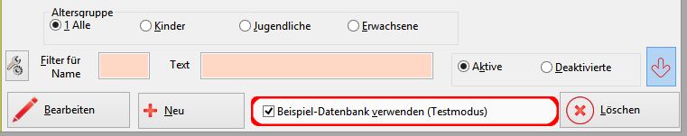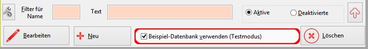 Testmodus: Beispiel-Datenbank aus-/einschalten