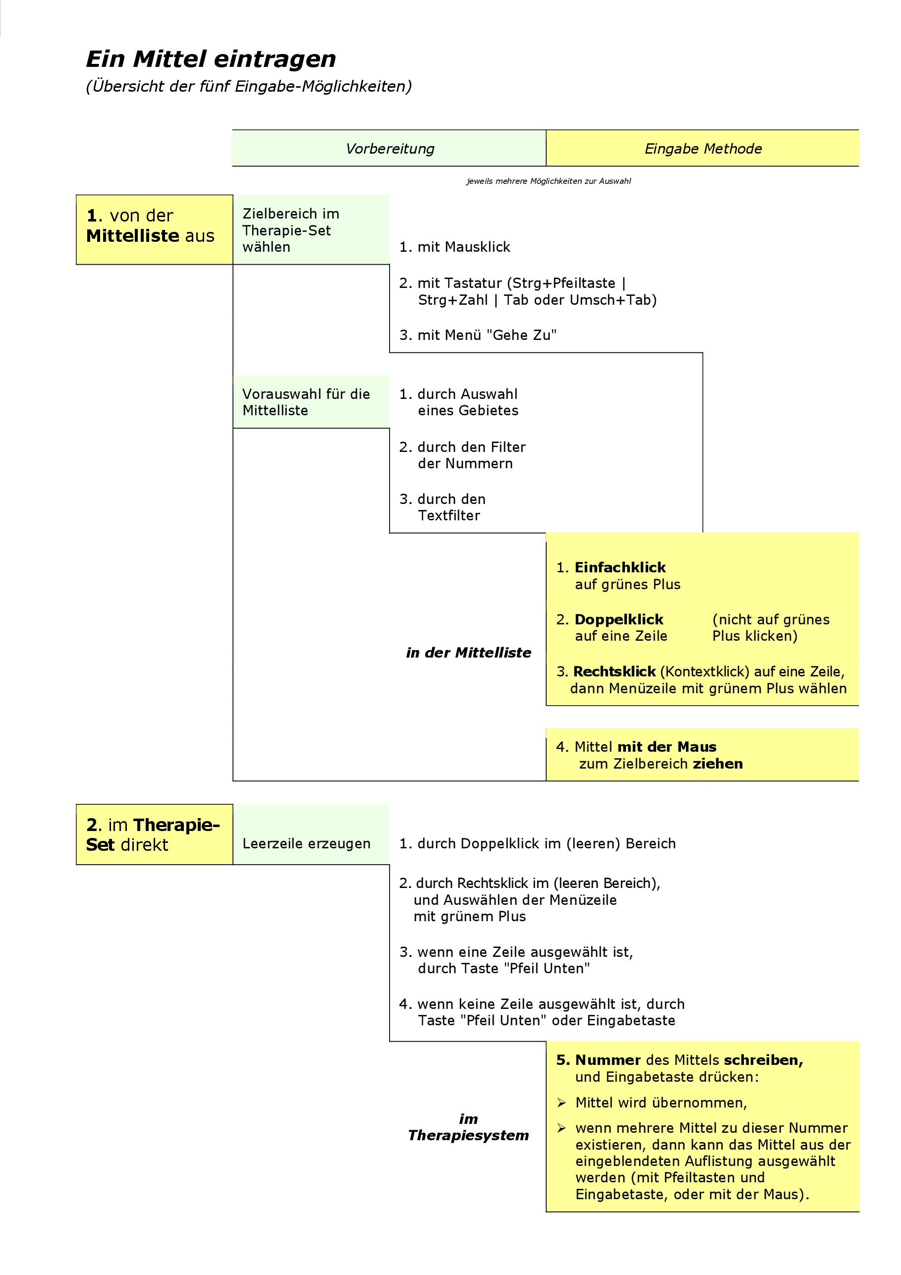Übersicht der fünf Eingabe-Möglichkeiten