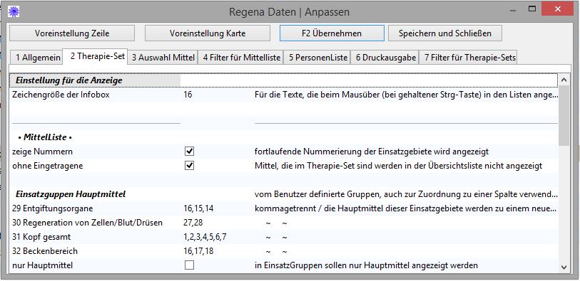 Dieses Fenster mit den Einstellungen ist auch vom Fenster 'Therapie-Set' aus erreichbar: